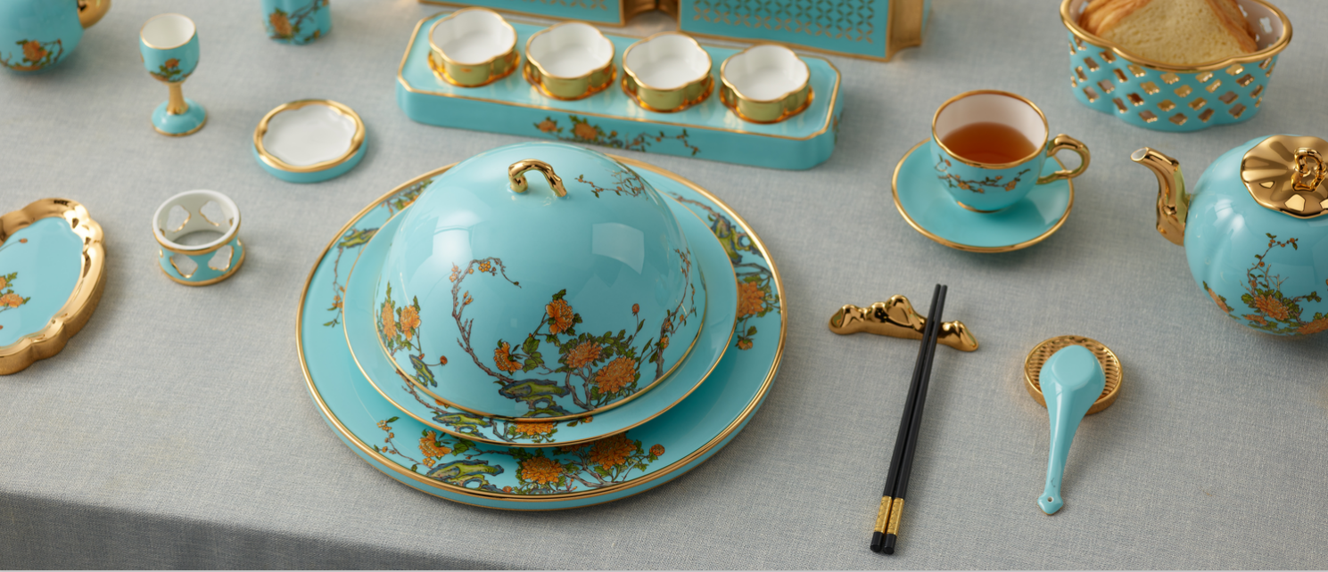 釉中金技術(shù)是通過(guò)高溫讓表層釉面變軟,使金面浸入釉中,形成釉中金效果。所形成的金面不但光亮平滑,經(jīng)久耐磨,且更抗腐蝕、抗氧化。釉中金技術(shù),瓷器與人的日常相伴,將歷久彌新。