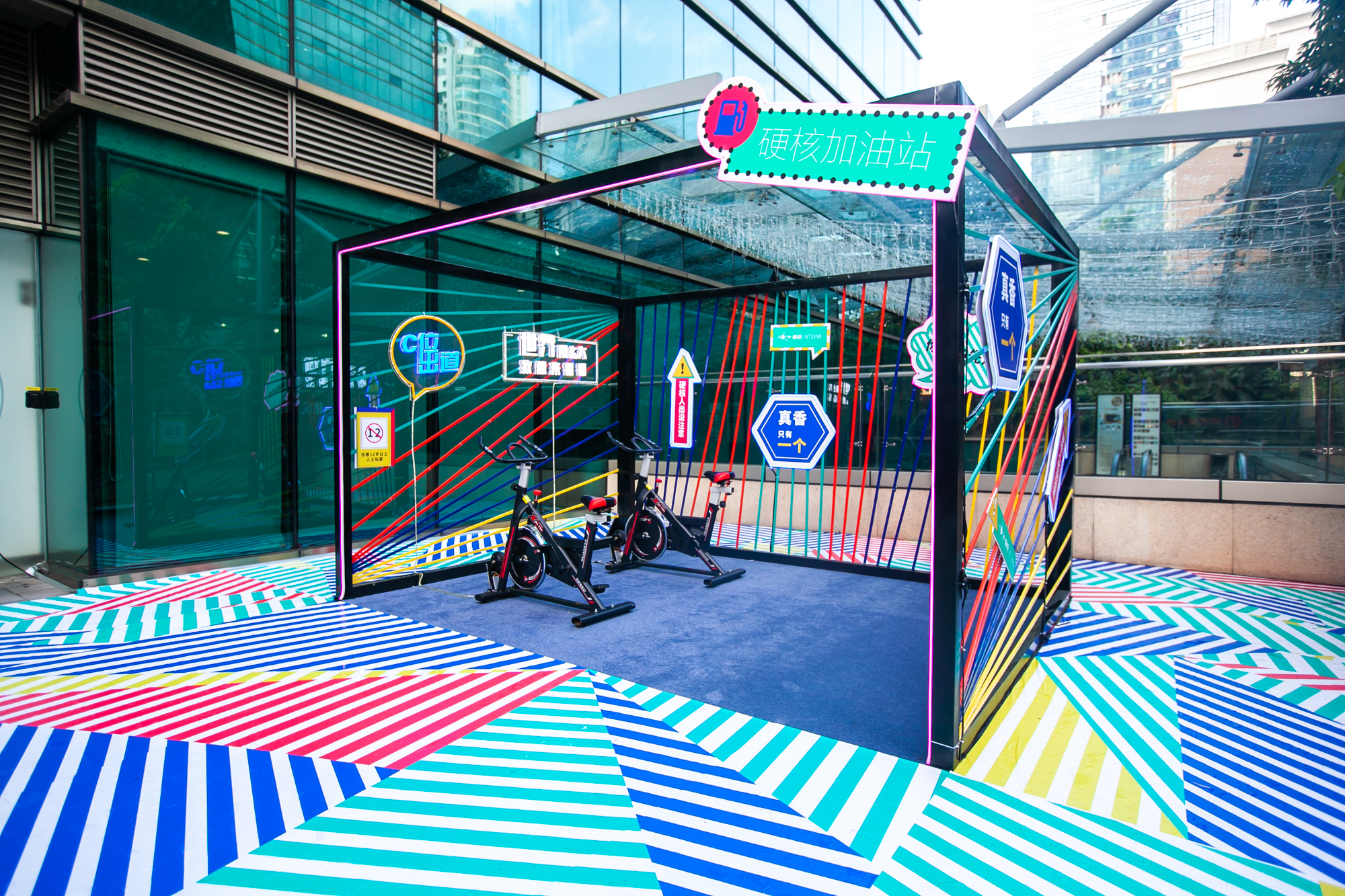 通過(guò)線下空間打造可供青年人拍照打卡的主題場(chǎng)景,讓“硬核”青年可以找到自身標(biāo)簽,從而自發(fā)二次傳播。在“硬核”的概念中,PR活動(dòng)延伸出夏日音樂(lè)祭、無(wú)人機(jī)紅包雨、硬核格斗機(jī)器人、流行嘻哈說(shuō)唱、電音泳池趴等深受年輕人喜好體驗(yàn)項(xiàng)目。