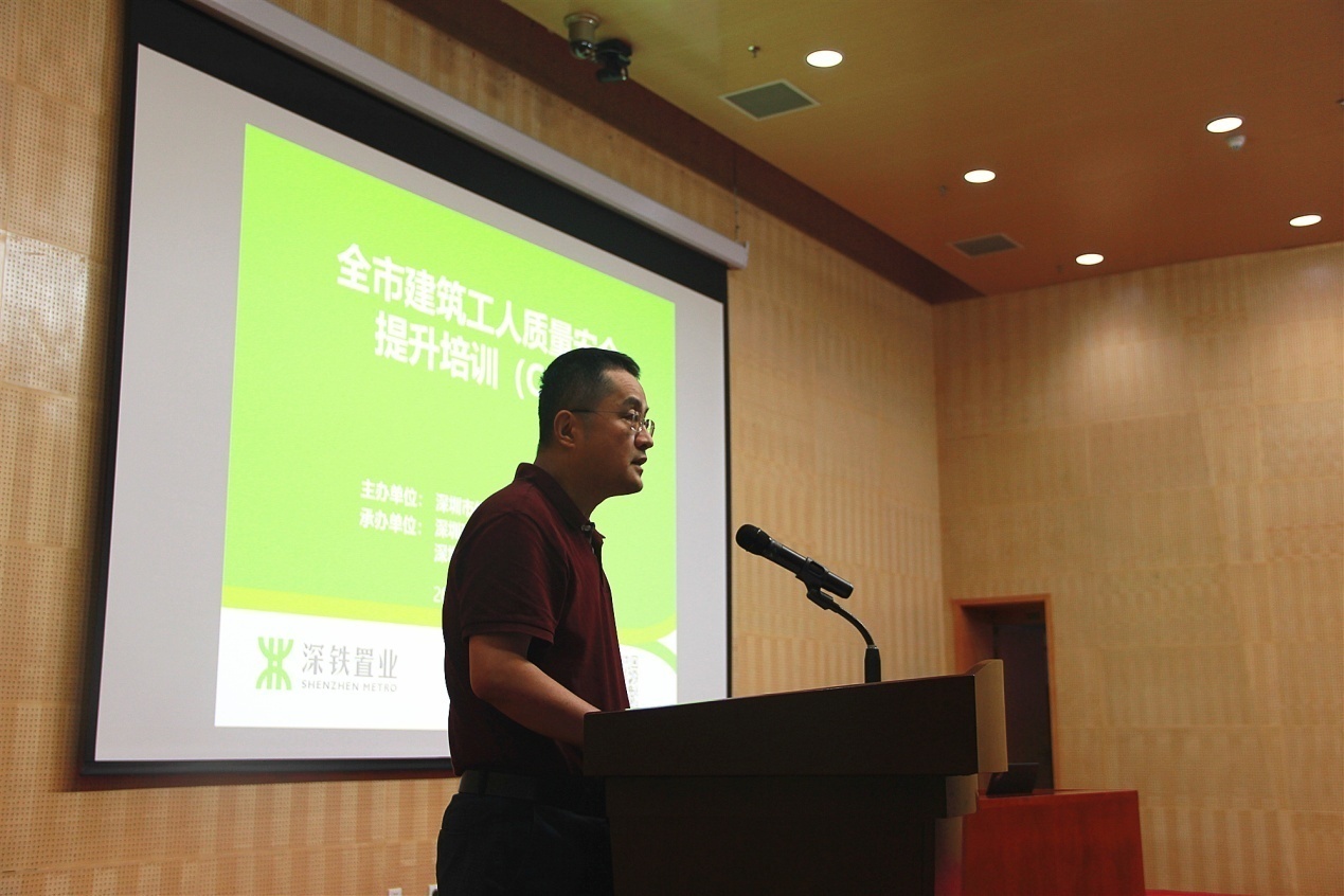 深圳市住房和建設(shè)局建筑市場和招標(biāo)投標(biāo)監(jiān)管處副處長董亮首先對一線工人表示親切的慰問,并對深圳地鐵置業(yè)集團(tuán)積極響應(yīng)政府號召,扎實落實工人安全質(zhì)量培訓(xùn)工作表示肯定。本次培訓(xùn)是市住建局建筑工人質(zhì)量安全培訓(xùn)提升工作方案的重要組成部分,接下來將在全市全面推行A、B、C、D、E五類培訓(xùn)。由政府、企業(yè)、協(xié)會、培訓(xùn)機(jī)構(gòu)四方力量共同攜手推進(jìn)崗前崗后、場內(nèi)場外、線上線下培訓(xùn)教育工作。今后,未經(jīng)過系統(tǒng)教育培訓(xùn)的工人將禁止進(jìn)入深圳市建筑市場。
