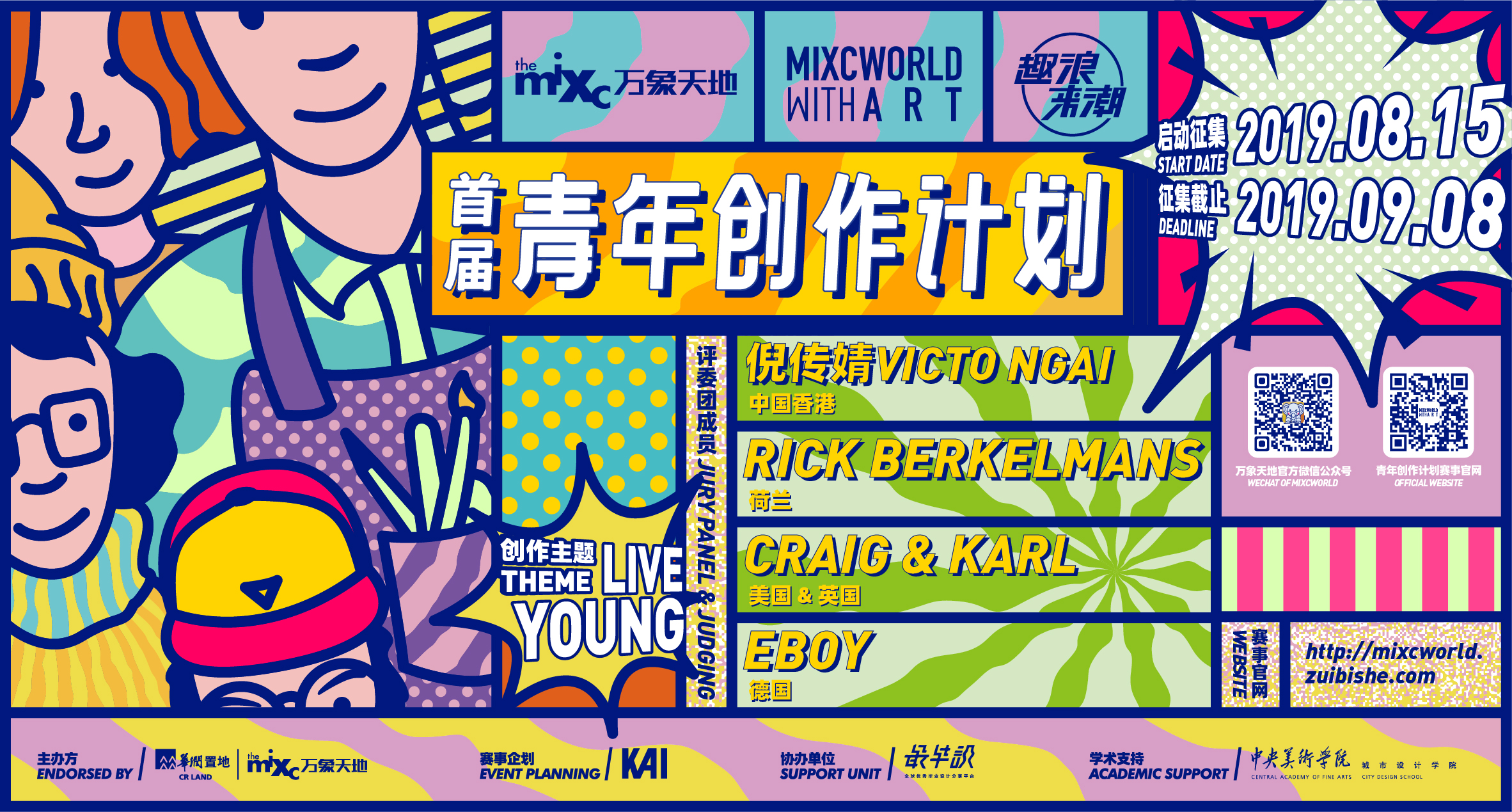 深圳新聞網(wǎng)2019年8月6日訊 2019年8月,深圳高人氣、高流量城市潮流地標萬象天地,攜手創(chuàng)意企劃機構KAI與新青年創(chuàng)意交流平臺最畢設,首次推出“MIXC WORLD WITH ART青年創(chuàng)作計劃”單元,面向全國在校學生及青年群體征集優(yōu)秀插畫作品,并為優(yōu)秀創(chuàng)作者提供高流量、高專業(yè)度的展示平臺。本屆賽事評委團由倪傳婧Victo Ngai、Craig&Karl、eBoy、Rick Berkelmans四大頂尖插畫藝術家組成,極具人氣度和專業(yè)度。本次“MIXC WORLD WITH ART青年創(chuàng)作計劃”于8月1日正式啟幕,投稿時間為8月15日至9月8日,共設立4大獎項,入圍的30幅優(yōu)秀作品將會以線下展覽的形式被展出。