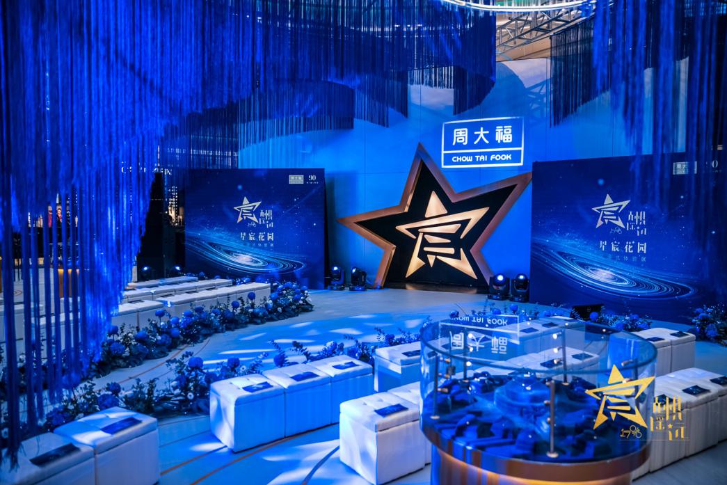 隨著現(xiàn)代都市生活節(jié)奏的加快,自由、輕快的自然主義,成為了人們心中放松與回歸的一片凈土。此次周大福以“宸·無(wú)懼遙遠(yuǎn)”為主題,采用沉浸式多媒體方式,將發(fā)布會(huì)變成了一場(chǎng)聯(lián)結(jié)夢(mèng)幻與現(xiàn)實(shí)的藝術(shù)展。在現(xiàn)場(chǎng)營(yíng)造的“星宸花園”中,體驗(yàn)區(qū)、展品陳列區(qū)、觀眾區(qū),每個(gè)區(qū)域都銜接自然,勾勒出如星河般的流暢動(dòng)線。觀眾游走其間,猶如在星空漫步一般。