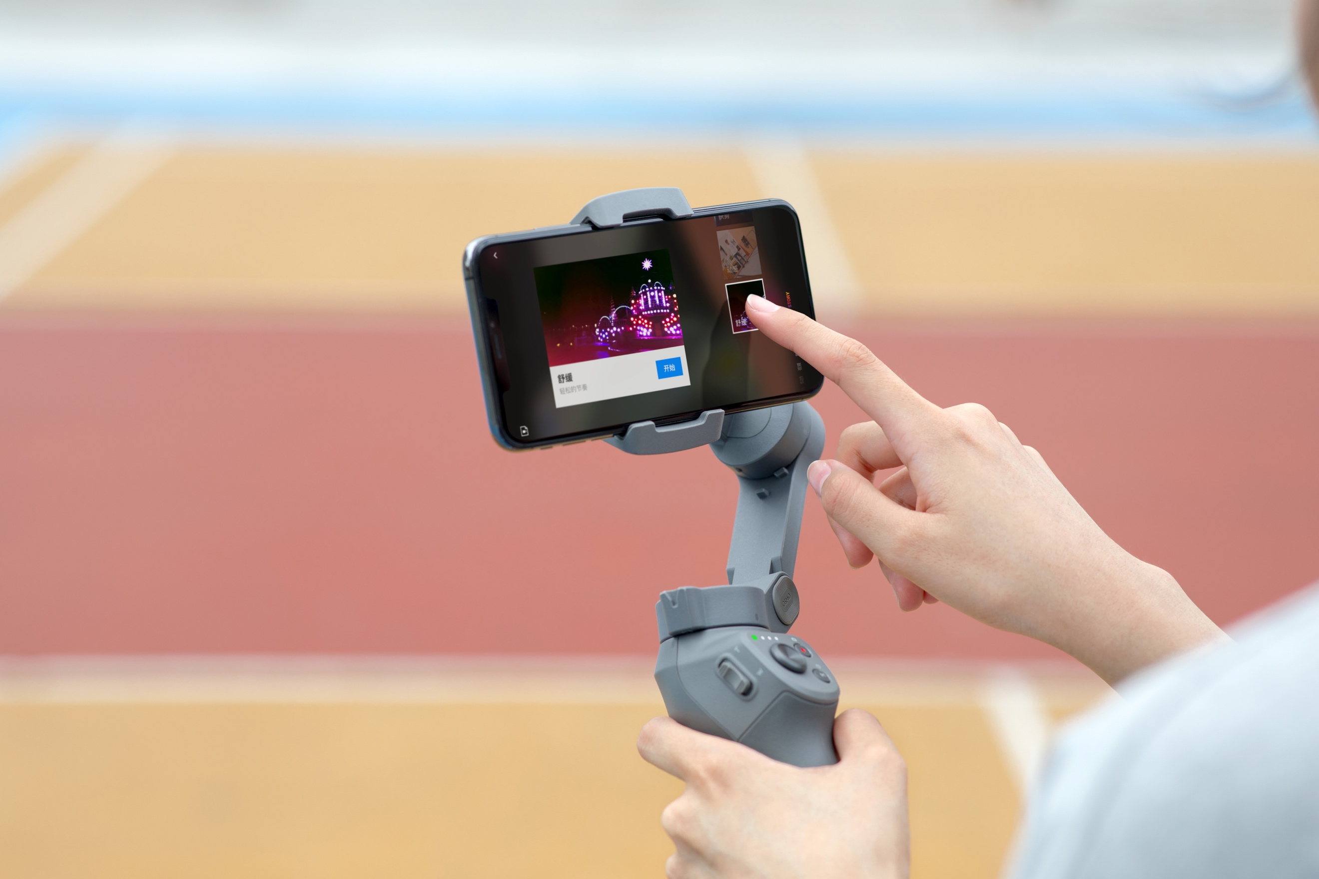 靈眸手機(jī)云臺3創(chuàng)造性地將常用功能集合成“一鍵操作”。強(qiáng)大的 M按鍵可切換拍照錄像、橫豎拍攝等多種模式,模式切換按鍵可以觸發(fā)智能跟隨3.0以及切換前后攝像頭、云臺模式等多種功能。結(jié)合預(yù)設(shè)快捷菜單欄,配合搖桿, M按鍵還可快速選擇多項拍攝功能。而利用機(jī)身側(cè)面的變焦滑桿不僅可以控制鏡頭變焦,還可通過 App控制變焦速度,營造趣味短片。相較于云臺工作狀態(tài)下在手機(jī)界面操作的不便,靈眸手機(jī)云臺3獨創(chuàng)的單手操控模式把手機(jī)攝像中需要的大部分操作匯集于兩根手指即能完成。這給手機(jī)視頻拍攝帶來了全新的交互體驗。