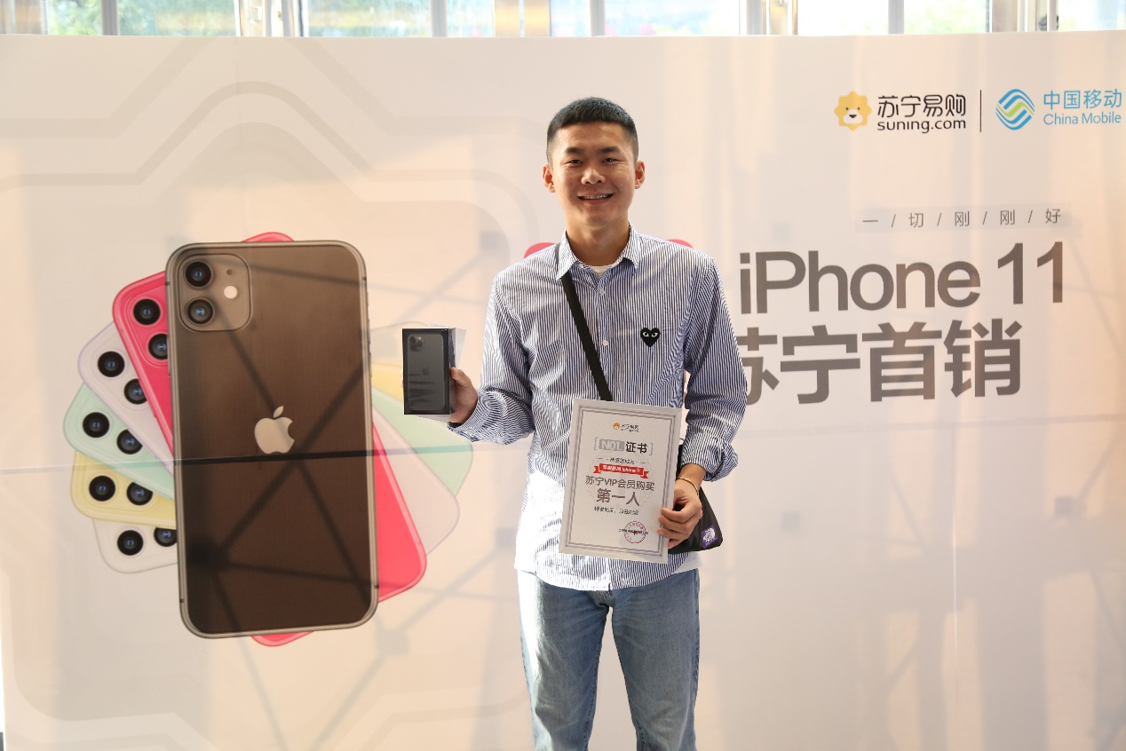 深圳新聞網(wǎng)2019年9月20日訊 9月20日8點(diǎn), iPhone11系列新品在國(guó)內(nèi)線(xiàn)上線(xiàn)下渠道同步開(kāi)售,上午8點(diǎn)剛剛開(kāi)售一分鐘內(nèi),在北京慈云寺蘇寧易購(gòu)門(mén)店,國(guó)內(nèi)第一臺(tái) iPhone11手機(jī)已經(jīng)賣(mài)出,一位在北京剛畢業(yè)的大學(xué)生謝先生作為資深果粉,成為國(guó)內(nèi)入手 iPhone11新機(jī)的第一人。