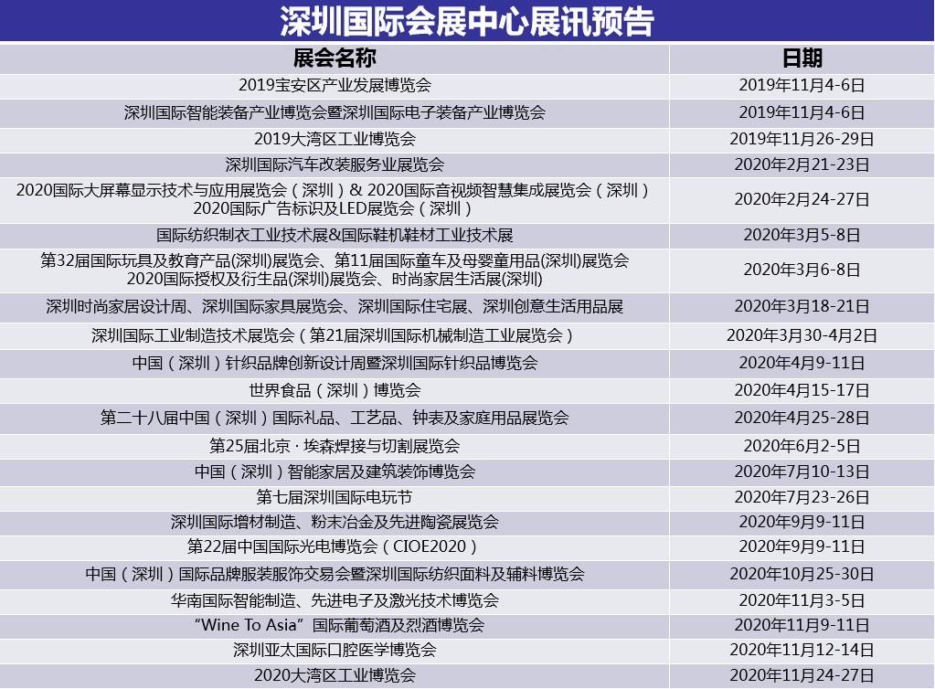 多場重磅展會將登陸深圳國際會展中心