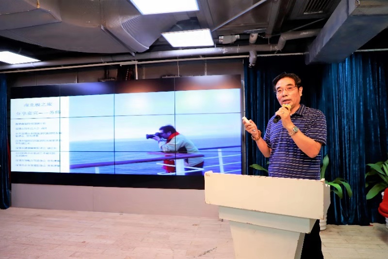 蘇偉老師在現(xiàn)場介紹:10月15日對深圳來說是一個極其不平凡的日子,上午在深圳舉辦了首屆“中國海洋第一展”暨“2019中國海洋經(jīng)濟博覽會”在深圳會展中心隆重開幕,下午由中國自主建造的首艘極地科學考察破冰船“雪龍2”號在蛇口港出發(fā)首航挺進南極,特別機緣巧合的是我今晚分享的內(nèi)容就是南北極旅游。為什么用“畫”極地,而不是“話”極地,這是因為,地球有三極,除了南北極外,還有“珠峰”就是第三極。而我們?nèi)齻€六十年的老男人,在蘇偉老師的鼓動下,三個人用不到三年的時間,踏訪了這“三極”。如果要展開講,恐怕三天三夜也講不完。所以,“畫”極地,就是用照片,講一下照片背后的故事。