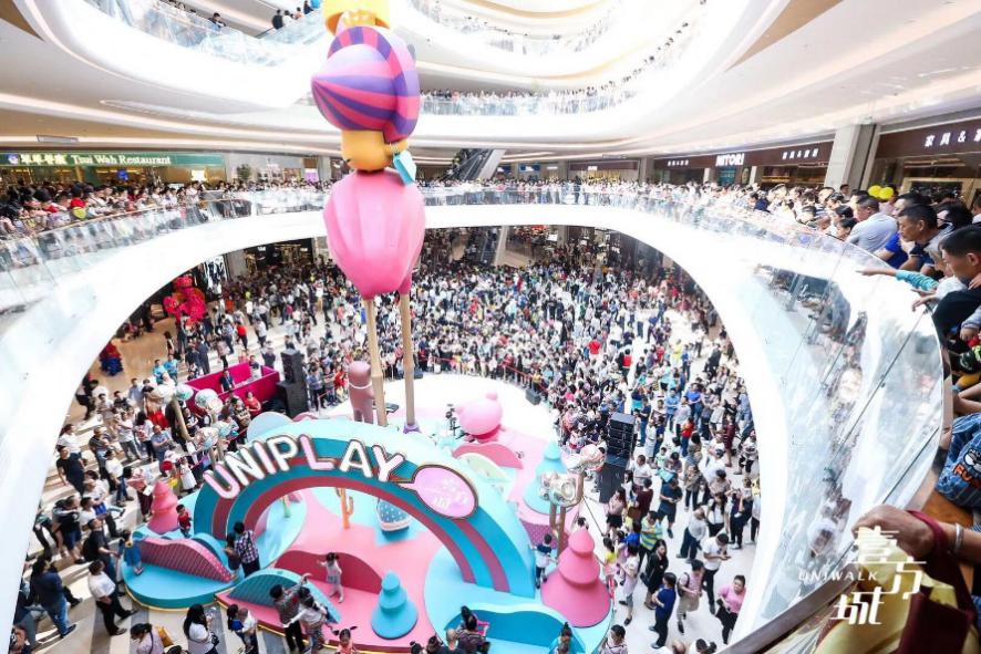 另一個(gè)是壹方城自行設(shè)計(jì)的6大自有IP——UNIPLAY家族,6個(gè)IP形象萌態(tài)可掬,受到了消費(fèi)者的普遍認(rèn)可。壹方城還通過(guò)制作公仔、帆布袋等實(shí)用IP周邊,以及與國(guó)際一線(xiàn)化妝品LANC?ME以及喜茶、潮宏基、來(lái)電、我是酸奶君等品牌聯(lián)名,巧妙加深與消費(fèi)者的情感鏈接,成就獨(dú)特的壹方記憶。