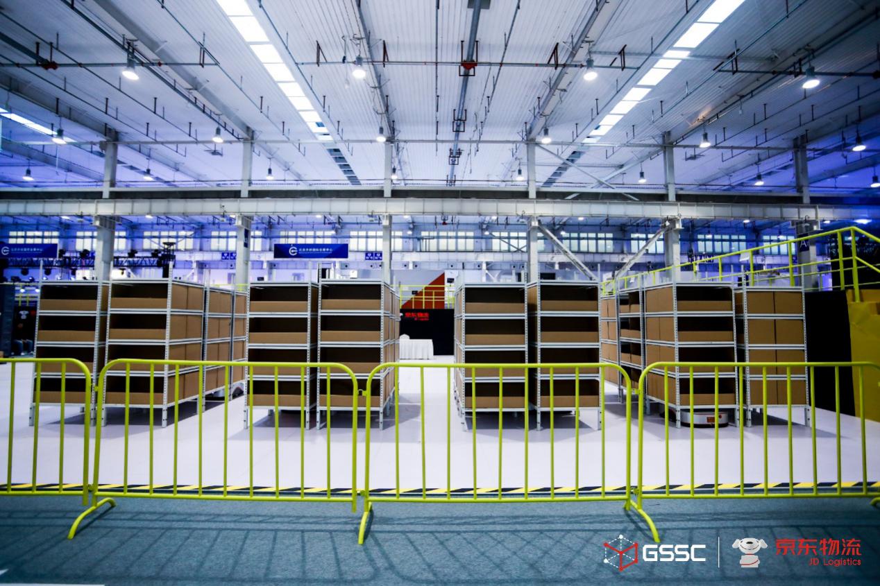 京東物流在2019全球智能物流峰會現(xiàn)場搭建的5G實(shí)景無人倉