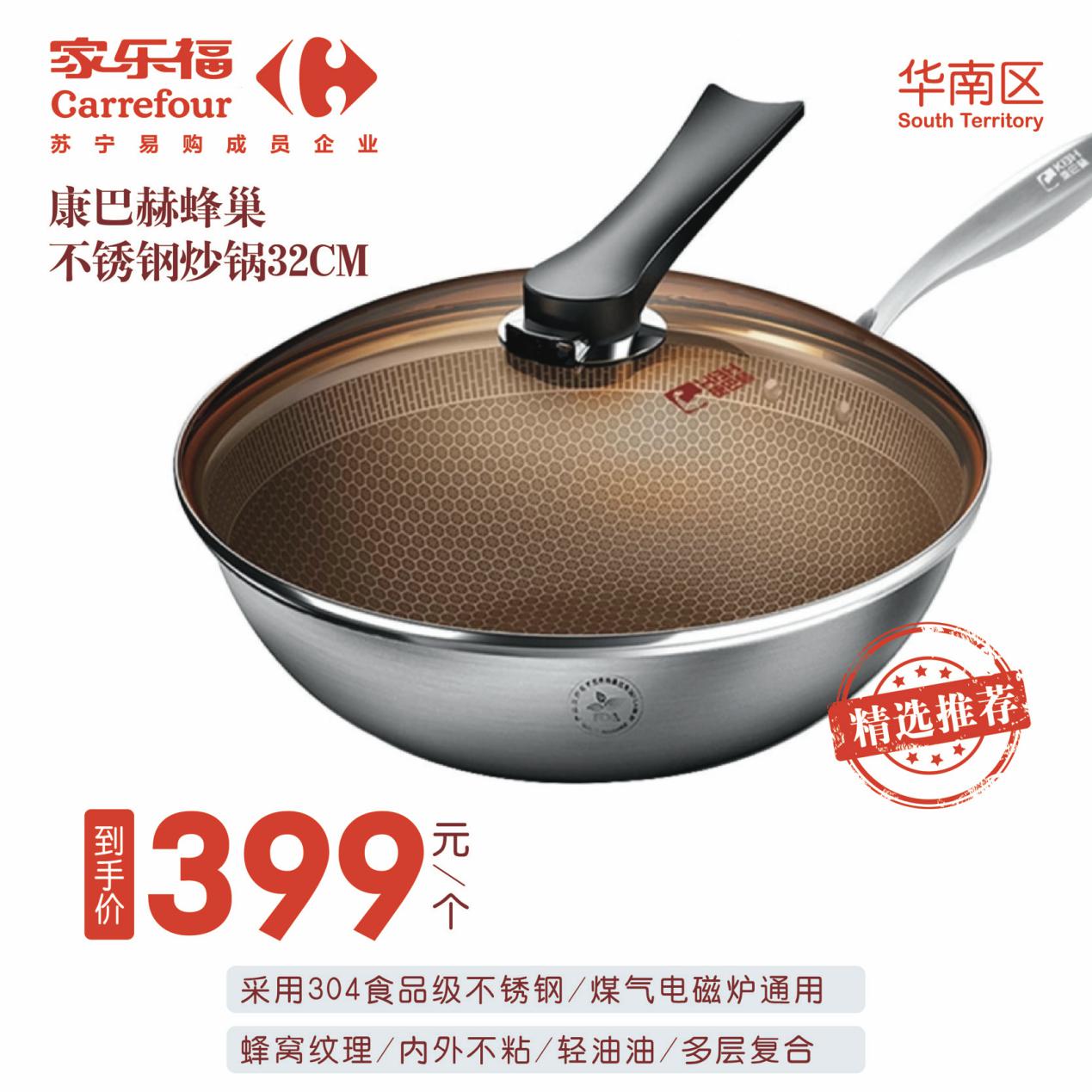 網(wǎng)紅爆款康巴赫蜂巢304炒鍋,相信不少人心儀很久了吧?就現(xiàn)在,家樂福到手價399元/個。采用304食品級不銹鋼材質(zhì),多層復(fù)合,煤氣、電磁爐通用。蜂窩紋理,內(nèi)外不粘,省油省心省事。各位廚神,趕緊把帥“鍋”帶回家,炒出幸福的味道!