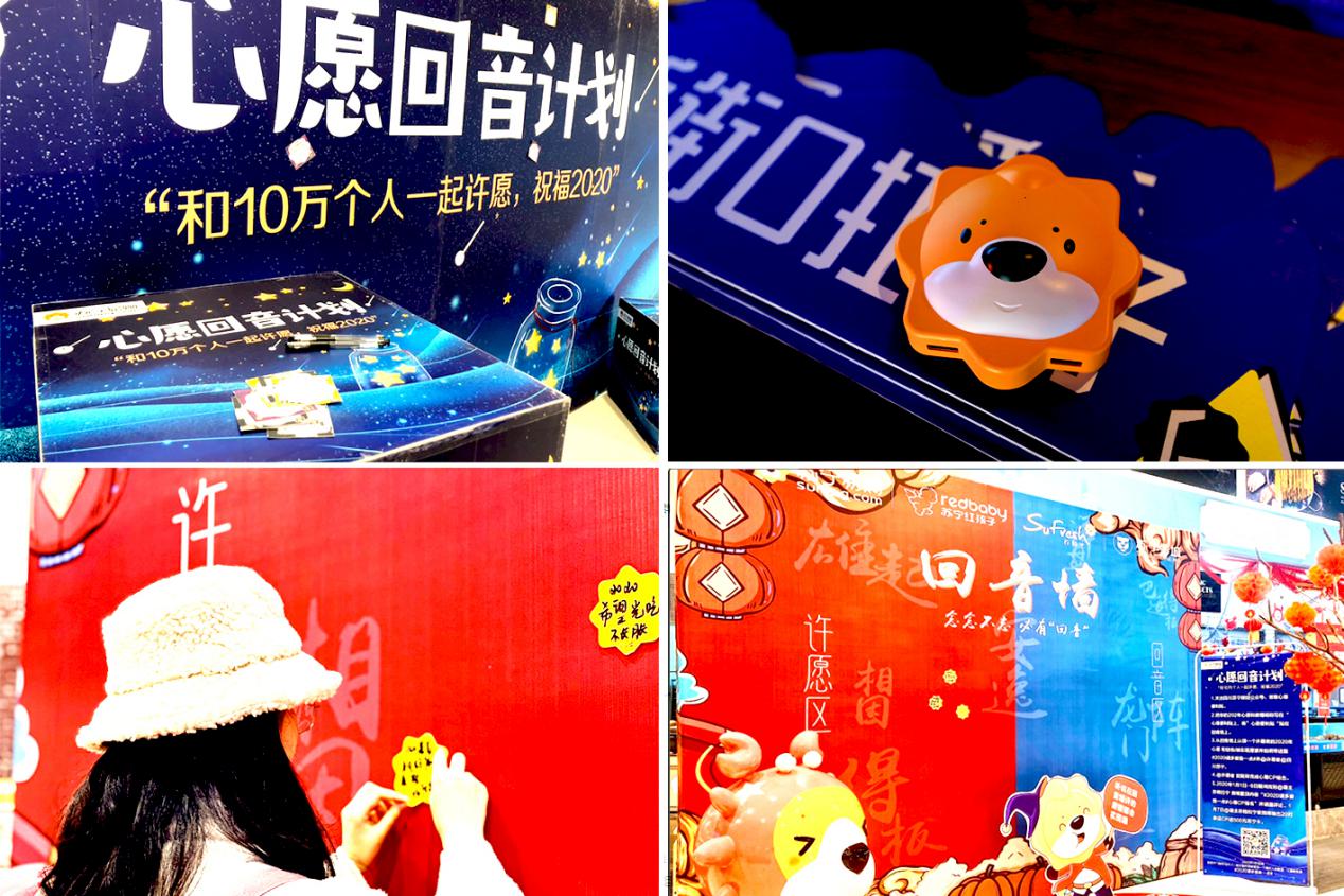 “心愿回音計劃”率先在南京徐莊園區(qū)啟動,蘇寧小店搭建起巨大的許愿瓶,瓶身通體為湛藍色,在藍色的背景中猶如海上漂流,并且內(nèi)置數(shù)不清的心愿球,許愿者可以在心愿球上寫出個人心愿,投回許愿瓶后等待圓夢,將會“和10萬個人一起許愿,祝福2020”。