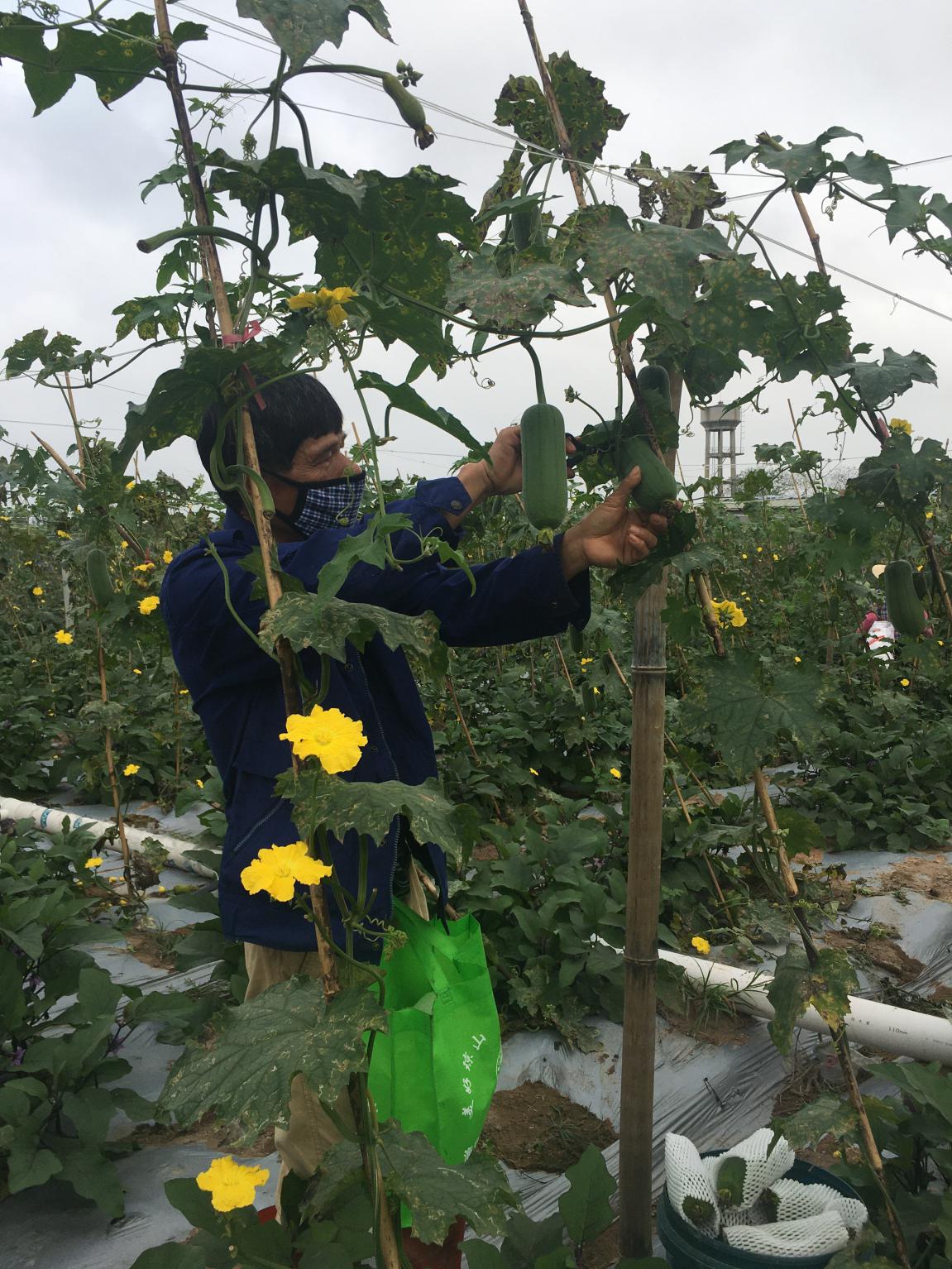 “前幾天,我們?nèi)ズ?诿捞m區(qū)大致坡萬眾農(nóng)合社采購了農(nóng)戶滯銷的絲瓜和圓茄,絲瓜每斤1.5元,圓茄每斤1元。在疫情沒來之前,圓茄采購價大概也要3.5 -4元每斤,絲瓜5 -6元每斤。這次進貨價的降幅高達(dá)75%?!奔覙犯HA南區(qū)蔬果采購部長孟毅介紹到。