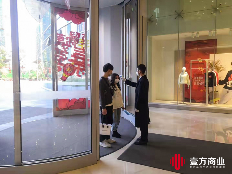環(huán)境之外,壹方商業(yè)還配合政府加強疫情預(yù)防工作,及時發(fā)現(xiàn)可能的感染者,避免病毒的進一步傳播。在營項目均要求顧客戴口罩進入,并設(shè)立多個體溫監(jiān)測點,安排專人對進場顧客進行無縫全覆蓋的體溫監(jiān)測,確保為人民群眾營造有序、健康、衛(wèi)生的環(huán)境,有力保障了社會民生穩(wěn)定。