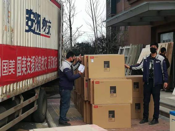 2月13日下午,國美還有援建武漢市九醫(yī)院東院A區(qū)方艙醫(yī)院的任務(wù),捐助200臺電視并完成配送。為了保證盡快完成如此大需求量的配貨,國美緊急調(diào)配了包括國美、TCL及海爾品牌電視,從武漢倉庫直接配送到方艙醫(yī)院,并按計(jì)劃于14日安裝調(diào)試。