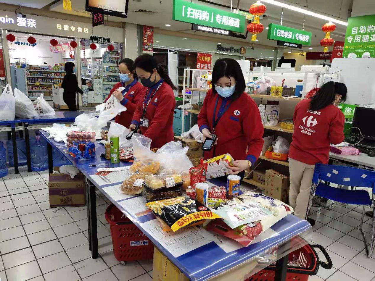 由于網(wǎng)上“配送到家”服務訂單量的劇增,在保障網(wǎng)上訂單及員工的安全性方面,蘇寧家樂福也做了十足防范措施。首先,蘇寧家樂福要求所有工作人員一律佩戴口罩,并通過體溫檢測才能上崗。其次,門店每天至少會在3個時間段使用84消毒液對賣場所有公共區(qū)域以及辦公區(qū)、員工餐廳等區(qū)域進行清潔衛(wèi)生消毒,并對手提籃、購物車、電梯扶手、垂直梯按鈕每隔2小時進行清潔消毒;再次,賣場的熟食產(chǎn)品加蓋加罩售賣,安排專人看管,禁止顧客直接用手觸摸,停止提供“試吃”及“餐飲堂食”服務。所有快遞、外賣小哥必須佩戴口燥,并通過體溫檢測,在門店入口用消毒凝膠清潔后方可提貨。值得一提的是,蘇寧家樂福還特別在外賣包裹中放置“安心卡”,承諾外賣配送安全可追蹤,請顧客放心。