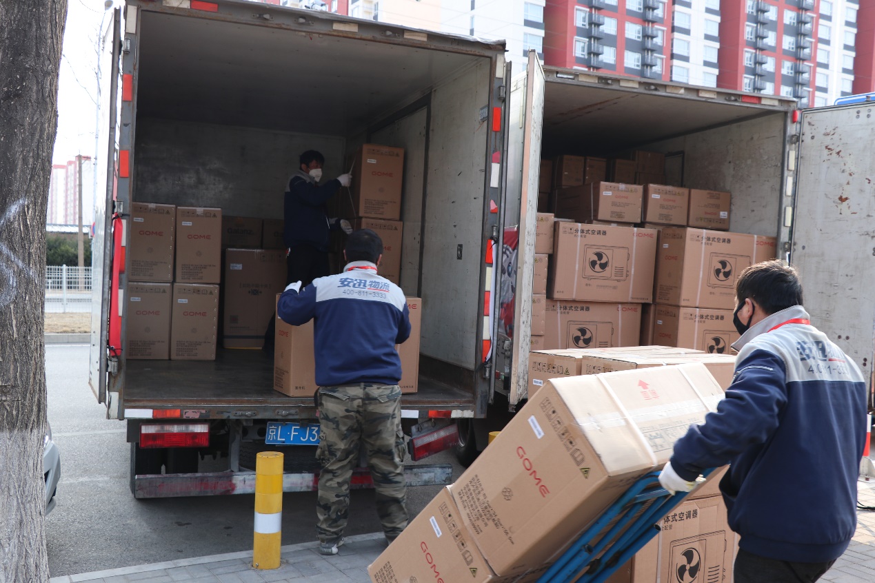 一大早,天剛剛亮,國(guó)美北京安迅物流金盞物流園門前2輛物流車又開始了忙碌的物資搬運(yùn)工作。國(guó)美送裝工程師徐海亮說:“今天的配送時(shí)間緊任務(wù)重,大家天沒亮就來到物流園,生怕耽誤了發(fā)車。我們都希望為北京當(dāng)?shù)氐囊咔榉揽刈鳇c(diǎn)事。”他參與了前日的第一批物資配送工作,又自告奮勇地加入了此次送裝工作。經(jīng)過2小時(shí)的車程,國(guó)美送裝工程師們又開始投入了緊張的家電安裝工作中,他們不但將每一臺(tái)電器安裝到位,還反復(fù)調(diào)試并詳細(xì)講解使用方法。當(dāng)天下午2點(diǎn),捐贈(zèng)的物資全部安裝完畢。