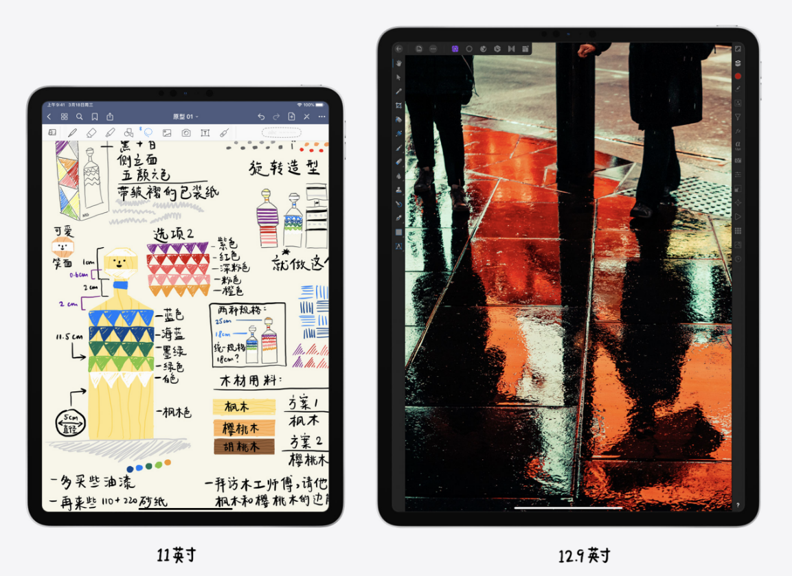 攝像頭一直不是iPad的強(qiáng)項(xiàng),而全新的iPad Pro由兩枚鏡頭組成,一枚是廣角的標(biāo)準(zhǔn)鏡頭,1200萬(wàn)像素、f/1.8的最大光圈,另一枚是超廣角鏡頭,1000萬(wàn)的像素、f/2.4的最大光圈,兩枚鏡頭都支持4K@60fps的視頻拍攝,可以說(shuō)是全面加強(qiáng)。