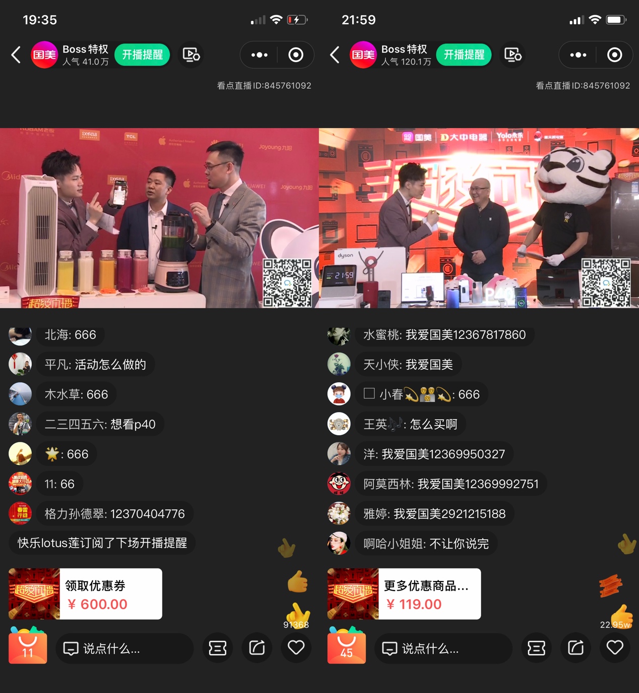而且,國美做家電直播重在把線下消費場景搬到線上,通過場景展示、專業(yè)講解為用戶提供最優(yōu)質(zhì)的、最合適的商品,過去大家認為的“低頻”商品,通過直播也可以一夜之間成為網(wǎng)紅爆品。