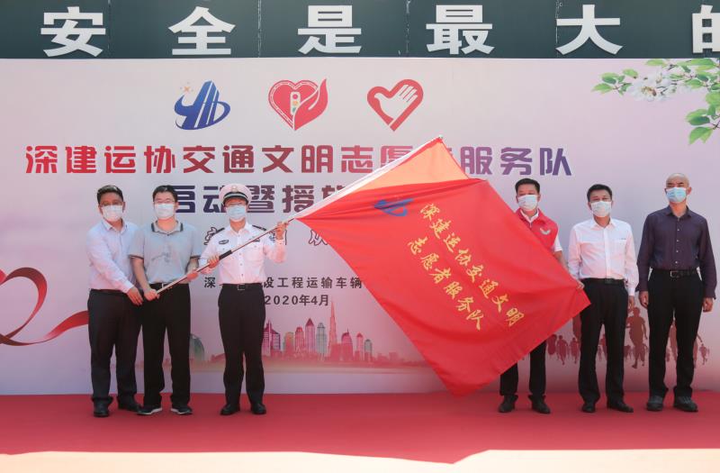 見圳客戶端·深圳新聞網(wǎng)2020年4月29日訊 為創(chuàng)建文明交通環(huán)境,引導行業(yè)人員自覺、主動參與志愿服務活動,用實際行動“服務社會,傳播文明”,昨日,深圳市建設工程運輸車輛協(xié)會在福田區(qū)交通警察局特勤大隊舉行了“深建運協(xié)交通文明志愿者服務隊啟動暨授旗儀式”。啟動儀式由協(xié)會黨委副書記兼紀委書記嚴勝強主持。深圳市交通運輸局、公安交警局、住房和建設局、社會組織管理局、義工聯(lián)合會領導和協(xié)會黨委領導班子、各黨支部書記、副會長、監(jiān)事長、副監(jiān)事長以及行業(yè)駕駛員代表等共計50余人出席了此次活動。