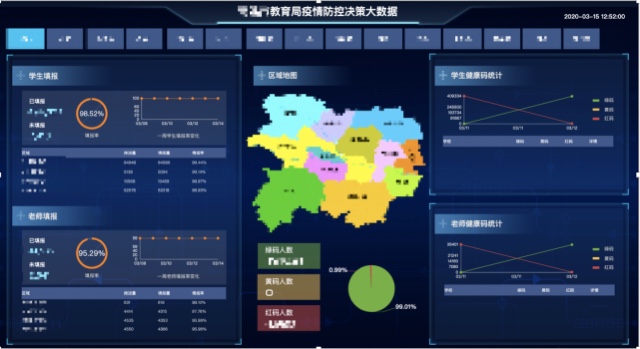 同時,企業(yè)微信的管理后臺具有多維數(shù)據(jù)展示、導(dǎo)出和防控數(shù)據(jù)動態(tài)可視化展示的功能,可實時監(jiān)測防控數(shù)據(jù),將數(shù)據(jù)進行分類匯總,管理者只需一鍵導(dǎo)出統(tǒng)計報表,就能全面掌握區(qū)域師生健康狀況,確認(rèn)返校師生員工名單,全面統(tǒng)籌安排后續(xù)教學(xué)工作。