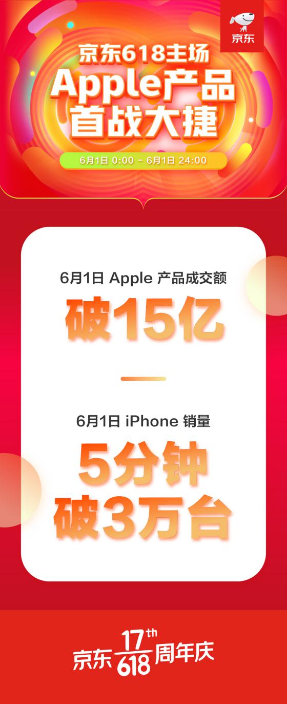 見圳客戶端·深圳新聞網(wǎng)2020年6月3日訊 京東618開啟首日,Apple品牌接連創(chuàng)下銷售記錄:僅5秒銷售額就突破1億;5分鐘后,iPhone銷量突破3萬臺;全天成交金額達到15億。