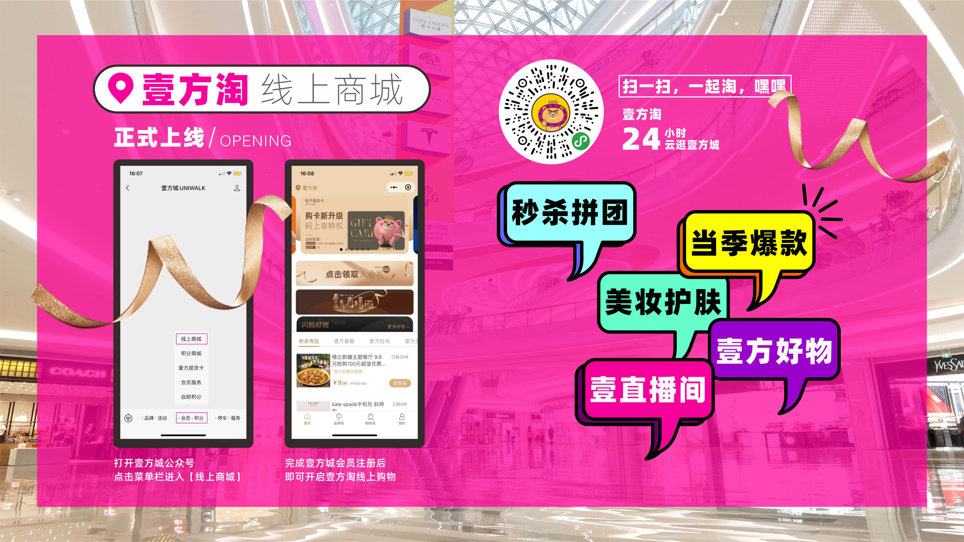 布局線上商城的同時,壹方也通過更多方式進行創(chuàng)新營銷,充分發(fā)揮商業(yè)排頭兵“創(chuàng)新變革”的魄力,滿足顧客購物需求的基礎(chǔ)上,線上線下多渠道整合聯(lián)動,不斷為消費者帶來全新生活場景體驗。