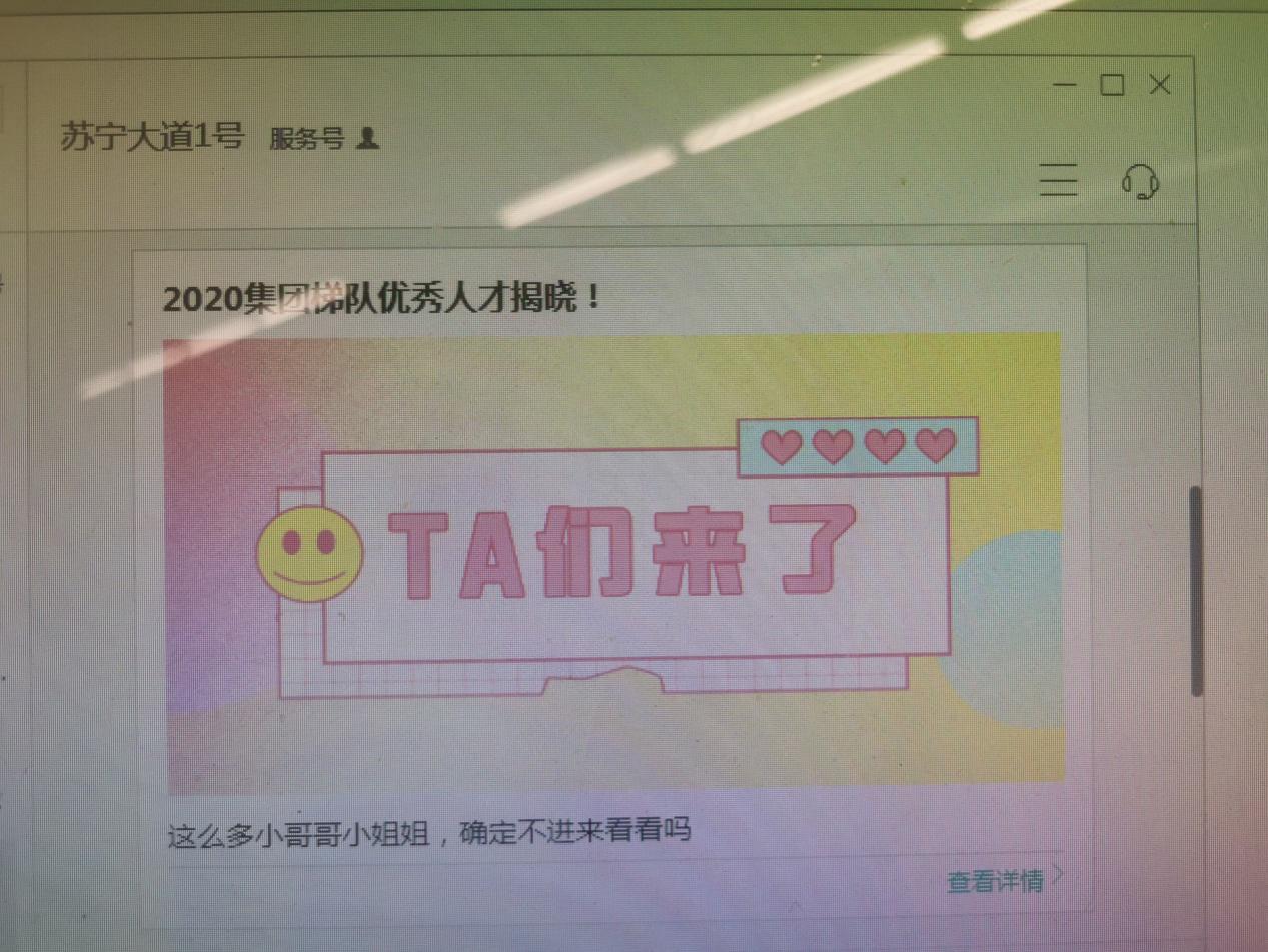 近期,有網(wǎng)友透露,蘇寧在內(nèi)部發(fā)文公布了2020年度集團(tuán)梯隊(duì)選拔的優(yōu)秀人才代表,通過選入管理干部梯隊(duì),逐層擔(dān)綱重任。