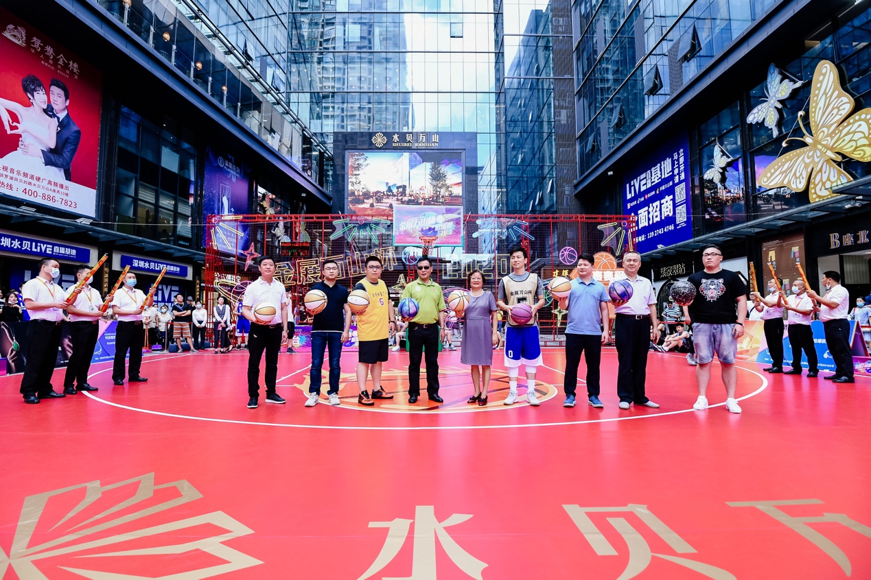 參加此次活動的領(lǐng)導(dǎo)和嘉賓們共同開啟“金展萬山杯”3V3籃球賽的第一球,預(yù)示著比賽正式拉開序幕。