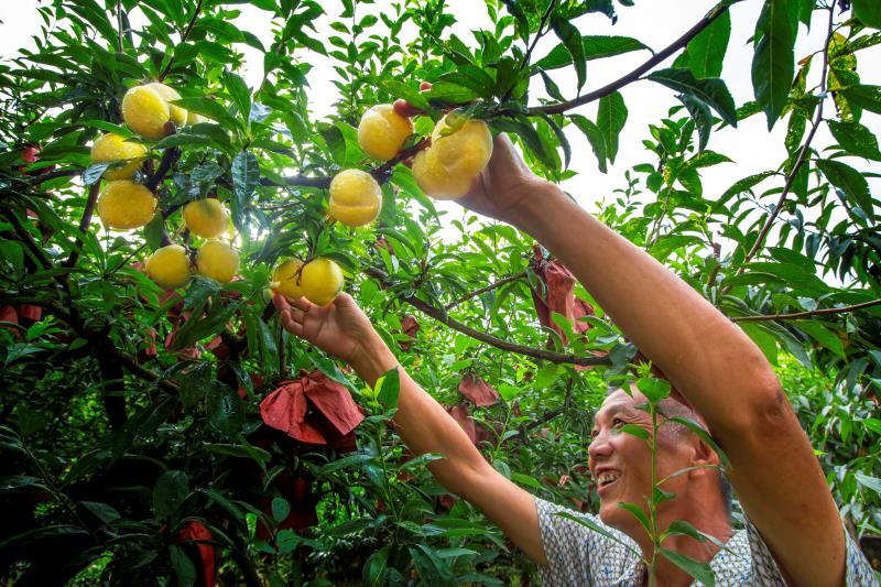 此次活動(dòng)舉辦地平樂村是炎陵黃桃的主產(chǎn)地之一,黃桃品質(zhì)首屈一指。記者看到,平樂村家家戶戶房前屋后漫山遍野都是黃桃,村民們正在忙著分揀、套袋、打包。小小的村道上,聚集了郵政、德邦、順豐等各大快遞公司。當(dāng)?shù)攸S桃種植大戶藍(lán)才洪告訴記者,接到訂單后,村民再上山采摘,經(jīng)過人工分揀,當(dāng)天就可以通過各個(gè)快遞公司將最新鮮的黃桃發(fā)走。