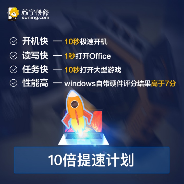 據(jù)了解,蘇寧快修電腦十倍提速服務(wù)共有兩種提速方案供用戶選擇。其一,機(jī)械硬盤電腦提速計(jì)劃,通過(guò)在機(jī)械硬盤電腦上加裝固態(tài)硬盤,將固態(tài)硬盤作為電腦系統(tǒng)運(yùn)行盤,原機(jī)械硬盤作為電腦資料存儲(chǔ)盤;其二,固態(tài)硬盤電腦置換擴(kuò)容計(jì)劃,將原有小容量固態(tài)硬盤替換為大容量固態(tài)硬盤,從而使電腦運(yùn)行速度提升3-10倍。