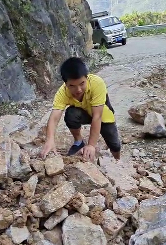 由于前期暴雨天氣,焦厚松車才開(kāi)到半路,就看到前方的路有了滑坡,緊靠著崖壁的道路已經(jīng)垮了一半。“掉頭還是前行?”焦厚松最終戰(zhàn)勝了猶豫,“答應(yīng)了用戶今天送到,不能就這樣放棄,先看看情況?!彼_(kāi)始下車觀察路況,發(fā)現(xiàn)主要是碎石堵住了前方七八米的路程?!叭绻謇硪恍?,車輛就能開(kāi)過(guò)去?!闭f(shuō)干就干,焦師傅隨后就開(kāi)始徒手清理路上的石塊。