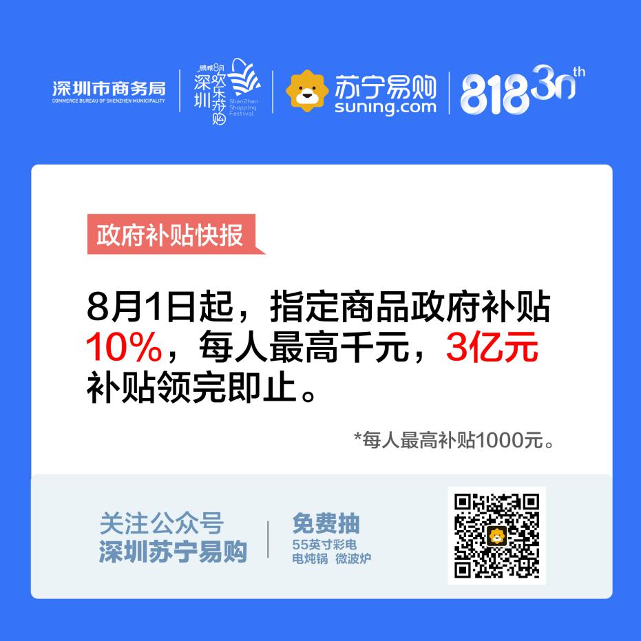 第二屆鵬城八月歡樂(lè)游購(gòu)——深圳家電數(shù)碼消費(fèi)節(jié)在華強(qiáng)北群星廣場(chǎng)自8月1日起拉開(kāi)帷幕,已向深圳居民推出3億元家電和數(shù)碼產(chǎn)品補(bǔ)貼政策,用戶按實(shí)際購(gòu)買(mǎi)價(jià)格的10%給予補(bǔ)貼,每位居民累計(jì)最高補(bǔ)貼1000元?;浉厶K寧電器店及家樂(lè)福與大潤(rùn)發(fā)近3000件商品均可享用。品類(lèi)覆蓋齊全,商品選擇范圍廣,為消費(fèi)者帶來(lái)一場(chǎng)盛大家電數(shù)碼消費(fèi)節(jié)的同時(shí)為經(jīng)濟(jì)消費(fèi)做出強(qiáng)有力的貢獻(xiàn)。
