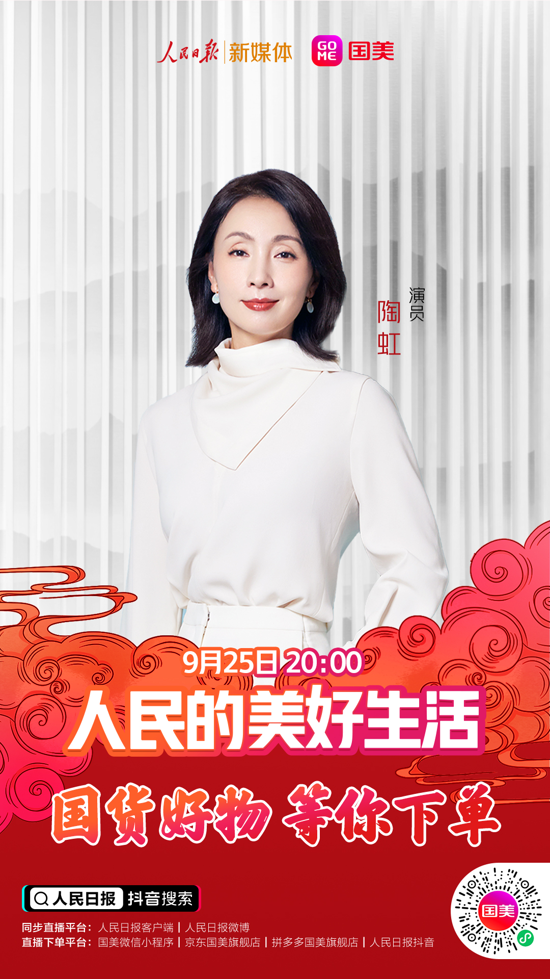 9月25日(周五)晚20點,鎖定人民日報抖音號、國美商城抖音號、國美微信小程序、國美京東旗艦店、國美拼多多旗艦店,關注直播,國貨好物,等你下單!人民的美好生活,不能少了你?。ǔ\娖剑?/p>