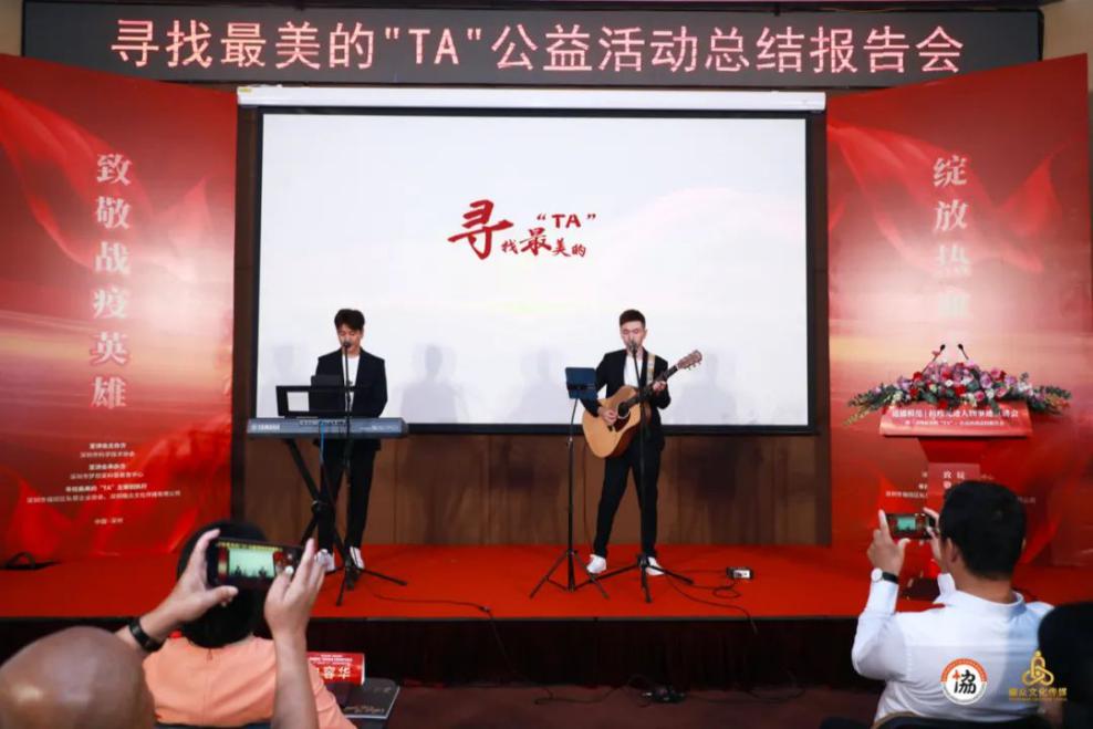 活動尾聲,會場響起一首滿懷敬意及祝愿的歌聲——尋找最美的“TA”公益活動主題曲《無名英雄》。這是由畢業(yè)于中國音樂學(xué)院并多次參演央視春晚、與郎朗同臺演奏的孫培軒與民謠吉他創(chuàng)作歌手強(qiáng)曉龍共同親情獻(xiàn)唱的原創(chuàng)戰(zhàn)疫歌曲,現(xiàn)場的各位嘉賓及觀眾無不感動,感謝無名的英雄們用那堅如磐石的雙肩,踐行著初心使命及鏗鏘有力的誓言。