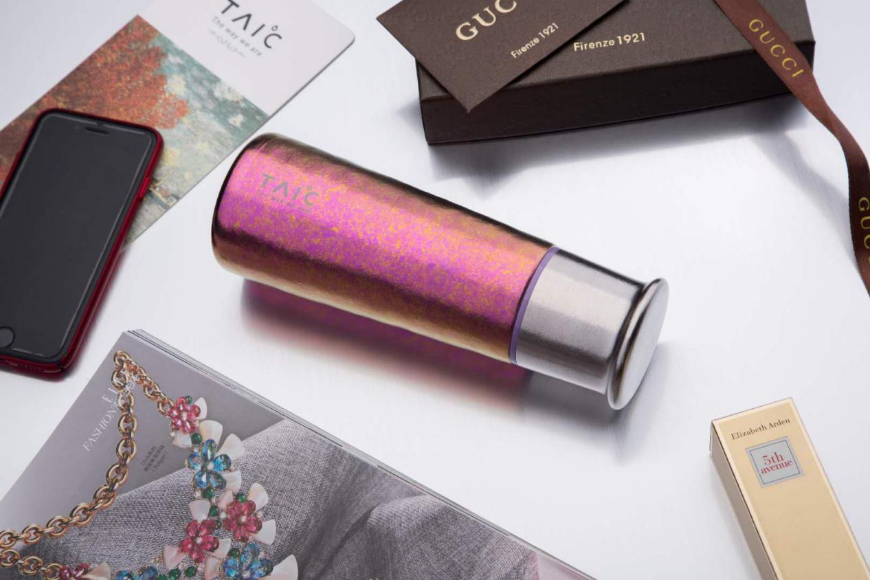 以這款純鈦T型杯為例:這款產(chǎn)品采用純鈦打造,純鈦具有形態(tài)穩(wěn)定、不易與食品飲品產(chǎn)生化學(xué)反應(yīng)、不易析出重金屬、不易出現(xiàn)排斥過敏反應(yīng)等優(yōu)點;產(chǎn)品外觀不使用任何噴漆材料,而是通過Ti- Anox技術(shù)讓鈦金屬呈現(xiàn)出自然絢麗如寶石般的色彩,一改鈦金屬材料灰暗的冷峻;盡顯匠心的手工打磨、堅韌輕盈的材料特性、優(yōu)良的保溫保冷效果……每處細(xì)節(jié)都在彰顯TAI℃鈦度完美、堅韌、健康的設(shè)計理念。