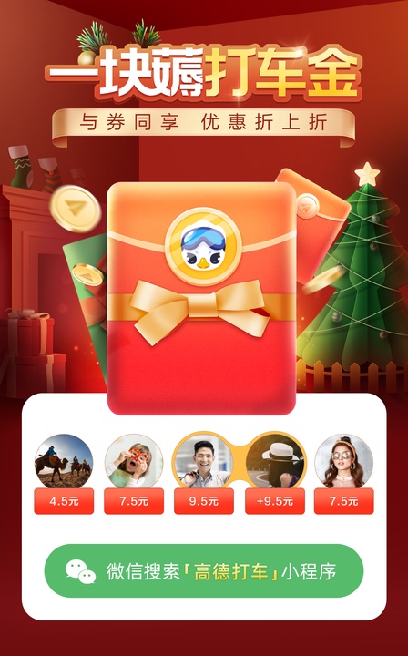 本次“1塊出發(fā)日”,高德打車將在微信小程序推出“一塊薅打車金”活動。用戶進入高德打車微信小程序,將獲得1個隨機金額打車金禮包,用戶將禮包分享給好友,好友點擊即可獲得打車金。禮包內(nèi)所有打車金均被好友領(lǐng)取完畢后,分享人將隨機獲得與其中一位好友等額的打車金獎勵。每個用戶可多次參與活動,活動期內(nèi)預(yù)計最高可得500元打車金。