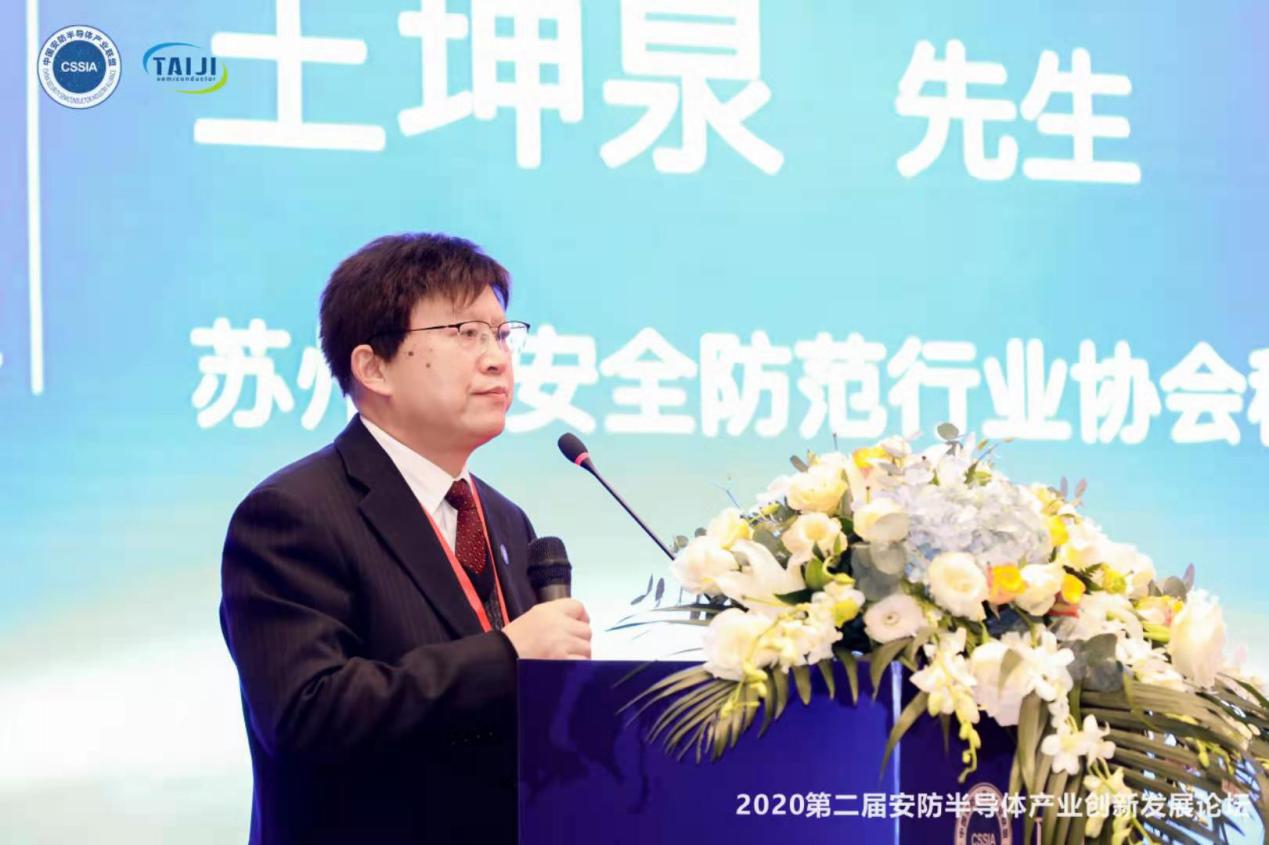 本屆論壇聯(lián)合國內(nèi)外安防與半導體主流企業(yè),推動中國安防半導體產(chǎn)業(yè)持續(xù)有序規(guī)范發(fā)展。全國安防協(xié)會合作互助聯(lián)盟首席顧問、公安部裝財局原副局長陶軍生,法國歐洲科學院榮譽院士、全國安防協(xié)會合作互助聯(lián)盟理事長、中國安防半導體產(chǎn)業(yè)聯(lián)盟主席楊金才,蘇州工業(yè)園區(qū)高端制造與國際貿(mào)易區(qū)產(chǎn)業(yè)發(fā)展局局長楊熠,蘇州市安全技術防范行業(yè)協(xié)會秘書長王坤泉,深圳市芯片行業(yè)協(xié)會秘書長吳征,臺灣資深半導體專家、中國安防半導體產(chǎn)業(yè)聯(lián)盟專家顧問、臺灣亞太高科技產(chǎn)業(yè)發(fā)展促進會副會長馮明憲,太極半導體(蘇州)有限公司董事長孫鴻偉等領導及嘉賓出席此次論壇。