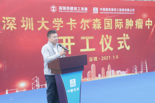 劉文作表態(tài)發(fā)言,中建四局作為唯一一家總部設(shè)在粵港澳大灣區(qū)的主力工程局,將嚴(yán)格按照深圳市工務(wù)署相關(guān)要求,發(fā)揚(yáng)艱苦奮斗精神,以高標(biāo)準(zhǔn)、嚴(yán)要求的工作態(tài)度,將深圳大學(xué)卡爾森國際腫瘤中心項(xiàng)目建設(shè)成優(yōu)質(zhì)工程、精品工程、廉潔工程。
