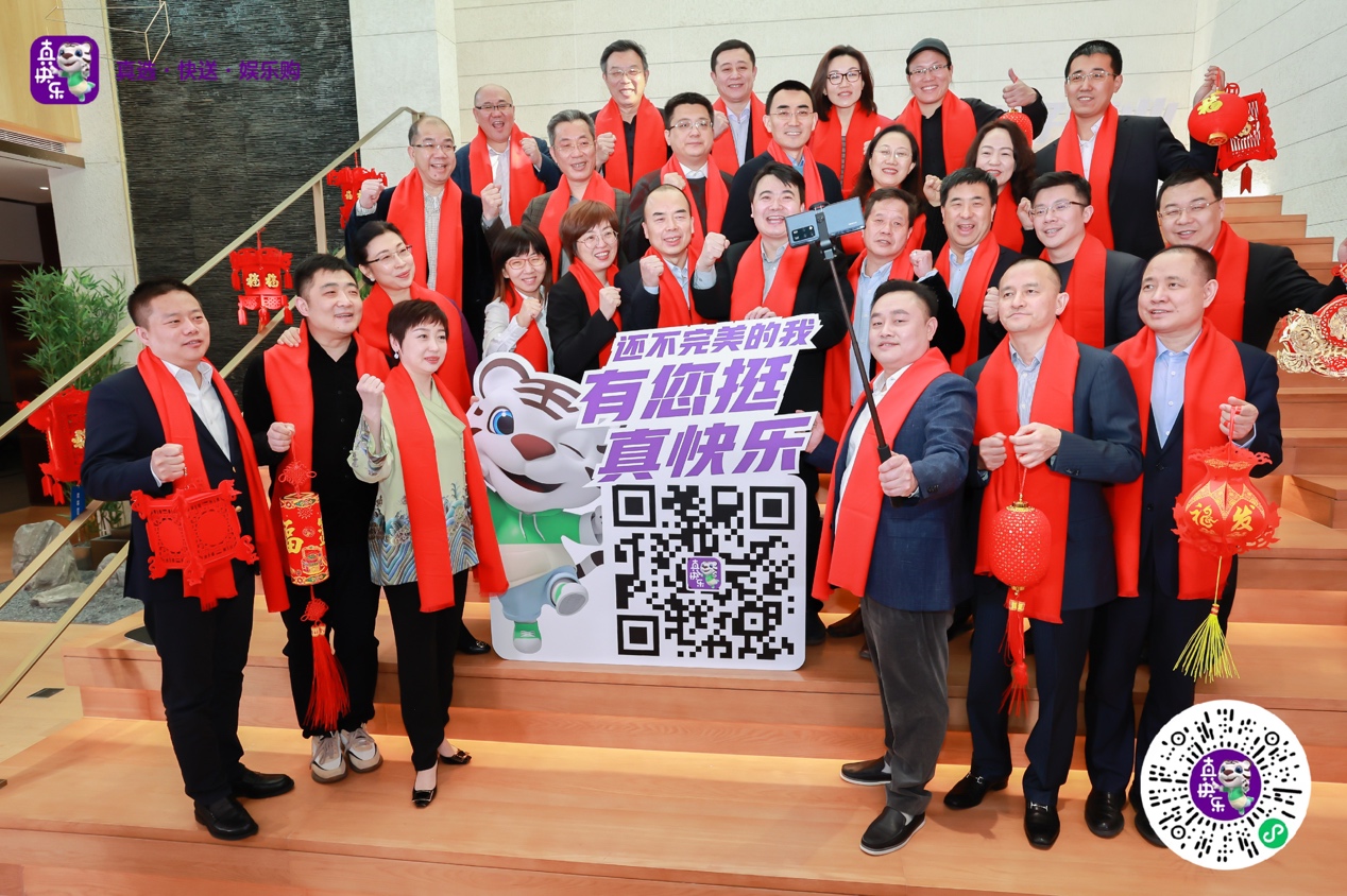 他還表示,“今天元宵節(jié),我特別邀請全國消費者,掃碼‘真快樂’A PP,來‘真快樂’體驗!”合影時,黃光裕帶頭玩起了自拍,他牽著“真快樂小虎”,特別提議在這個快樂的節(jié)日,大家一起為“真快樂”A PP打C ALL。他帶領(lǐng)高管們向全體國美員工、各界合作伙伴、全國消費者,一起發(fā)出“還不完美的我,有您挺!真快樂!”的熱情邀請和真摯祝福,將元宵國美全家福快樂定格。