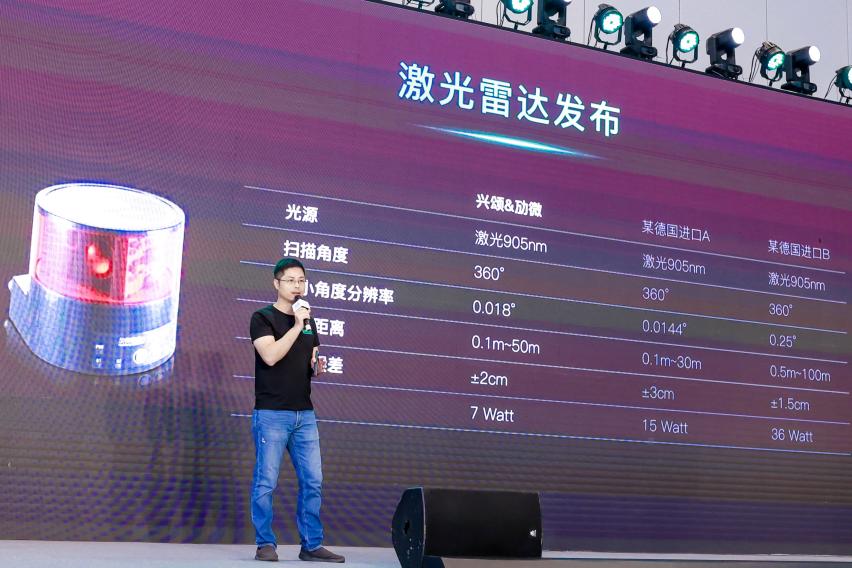 接下來進(jìn)入到發(fā)布會重磅內(nèi)容環(huán)節(jié),首先,勱微機(jī)器人CEO陳文成在會上宣布了勱微聯(lián)合興頌研發(fā)的激光雷達(dá),這款激光雷達(dá)具有優(yōu)異的性能,即使在5%反射率的環(huán)境下,依然可以有50m的檢測距離,同時(shí)還具備非常穩(wěn)定的持續(xù)輸出,且精度保持在±2mm,較同行的±10mm更精準(zhǔn)。