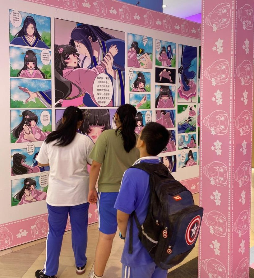 坂田天虹正門(mén)設(shè)有通靈妃打卡點(diǎn),側(cè)門(mén)布置了通靈妃漫畫(huà)墻,喜歡通靈妃的小伙伴可以線下看漫畫(huà)啦!在三樓和四樓也有千云兮和夜幽冥等你來(lái)打卡哦!