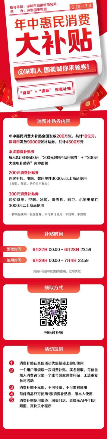這一波薅羊毛攻略絕對(duì)實(shí)用,深圳地區(qū)深圳市國(guó)美電器更是在深圳市福田區(qū)商務(wù)局指導(dǎo)下,認(rèn)真組織、積極推進(jìn),一起助力人民品質(zhì)生活升級(jí)。據(jù)了解,本次深圳地區(qū)將發(fā)放4500萬(wàn)的消費(fèi)補(bǔ)貼券,將惠及9萬(wàn)人次,廣大消費(fèi)者們?nèi)缬匈?gòu)置家電等產(chǎn)品需要的趕緊登陸真快樂(lè)APP領(lǐng)取優(yōu)惠券吧!