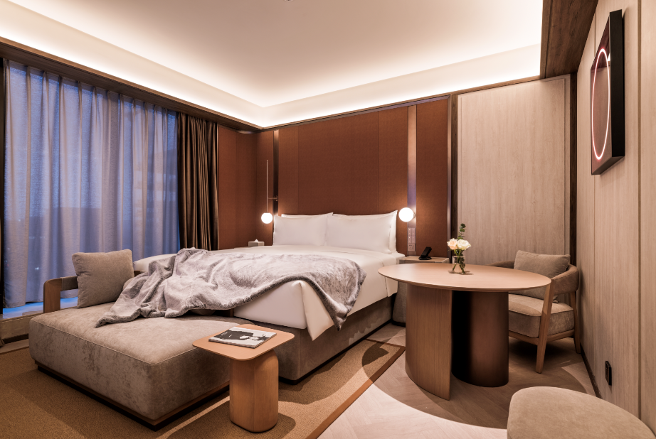 在公區(qū)設計上,“新水晶”回歸本質與純粹,采用胡桃木、古銅、玻璃元素,打造更具質感更具高級感的空間氛圍。大堂配備的威士忌酒廊,優(yōu)雅中又帶著商務,整體提升水晶品質特質??头績炔浚彤嫲愕馁|感與流暢典雅的線條相結合,干凈而明亮,純粹的質地、靜謐的空間,展現(xiàn)了水晶的格調和品味。