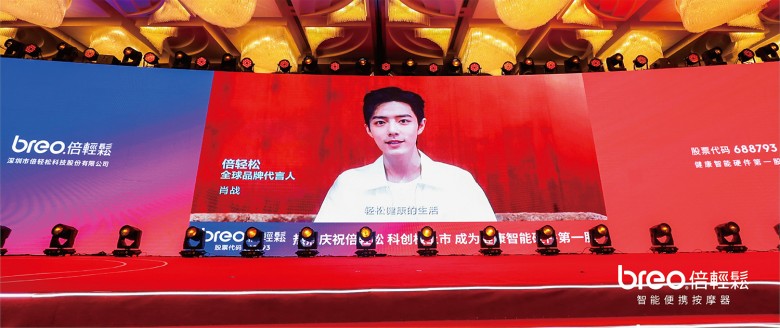 在7月14日倍輕松的上市答謝晚會上,眾多核心合作伙伴紛紛發(fā)來祝福,倍輕松全球品牌代言人肖戰(zhàn)發(fā)來賀電,共同祝賀倍輕松成功上市,成為健康智能硬件第一股。倍輕松董事長馬學(xué)軍談到了倍輕松成立的初心——創(chuàng)造中國品牌,希望通過三個(gè)十年將中國品牌倍輕松打造成全球第一品牌。馬學(xué)軍談到,倍輕松在第一個(gè)十年打造品牌基礎(chǔ),第二個(gè)十年做到行業(yè)第一,第三個(gè)十年沖向世界,讓中國品牌被世界所熟知。