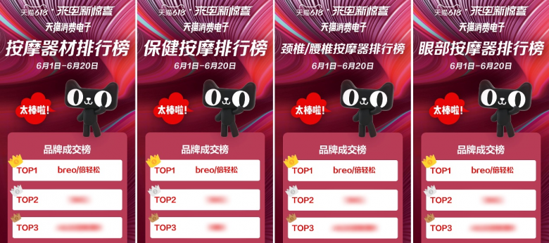 倍輕松的產(chǎn)品地位從創(chuàng)新、科技上很好地體現(xiàn)出來,而更重要的是在消費(fèi)市場上,倍輕松仍占據(jù)了便攜式按摩器行業(yè)的重要份額。自倍輕松宣布肖戰(zhàn)成為全球代言人以來,這家21年高端按摩器品牌在線上銷售數(shù)據(jù)十分優(yōu)異,在目前中國購物網(wǎng)站巨頭的天貓、京東平臺榮獲多個(gè)品類排行榜第一。在618這個(gè)重要的消費(fèi)日節(jié)點(diǎn),倍輕松輕易獲得京東開門紅,僅4天就達(dá)到全網(wǎng)銷售額過億的成績。不僅在線上,倍輕松布局的線下門店多達(dá)150+家,各大機(jī)場、高鐵站、shopping mall均可以看到倍輕松的身影。據(jù)官方數(shù)據(jù),倍輕松在2021年上半年天貓平臺榮獲眼部按摩器單品品類排行榜第一如此以來,可以說倍輕松是便攜式按摩器線上平的領(lǐng)軍品牌。