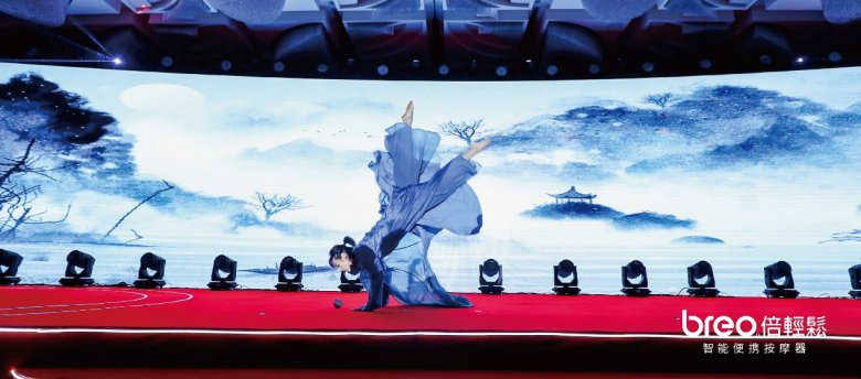 在晚會上,倍輕松邀請了風(fēng)暴舞者羅昱文表演中國古典舞《問月》?!拔ㄔ府?dāng)歌對酒時(shí),月光長照金樽里。”這支舞蹈傳遞出中國東方美學(xué)和倍輕松的品牌哲學(xué)如出一轍的相似。舞者用古典神韻和舞姿將“與月相期邈云漢”的浪漫情懷表達(dá)的淋漓盡致。詩與酒,樂與舞,醉人心。