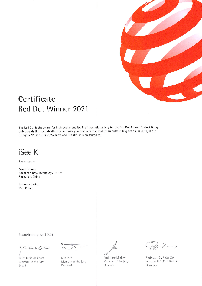 2021年倍輕松眼部按摩器iSee K榮獲紅點(diǎn)設(shè)計(jì)獎