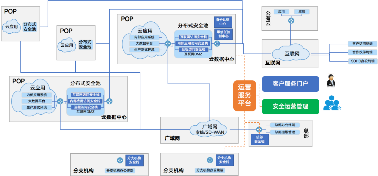“Q-SASE的推出,充分考慮了當下國內企業(yè)和政府機構的實際情況和轉型需求?!蓖踯绫硎?,Q-SASE服務采用類似專有云+公有云的部署模式,通過統(tǒng)一安全架構、分布式安全池、零信任為基礎等核心理念,為政企信息化應用提供可落地的安全訪問服務。