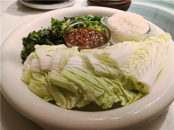 尤其扎眼的,正對(duì)大門的明廚亮灶上的幾塊牌匾,一下子就勾起人的食欲:老式熏豬手、手工燒老雞、烏蘇里江鰉魚、興凱湖大白魚、查干湖胖頭魚、火夫灶羊腿。這些都是地道的東北味?。?jù)介紹,老板湯長(zhǎng)明是黑龍江“龍菜”系傳承領(lǐng)軍人物,祖孫四代傳承東北菜廚藝,現(xiàn)在關(guān)東大院餐飲集團(tuán)董事長(zhǎng)。當(dāng)然,許多大家耳熟能詳?shù)拇蟊姴艘矐?yīng)有盡有,如:殺豬菜、小雞燉蘑菇、得莫利燉魚、大鵝燉寬粉、黑皮肘子、酸菜粉、地三鮮、東北鹵水點(diǎn)豆腐、金湯遼參、黃魚燒土豆、紅燒肉黃金勾......看得人口水直冒。加之,整個(gè)門店的布局也十分特別,一樓明廚亮灶之外,主要是大堂散座,周邊還有不少的書籍、酒架;二樓主要是包間,簡(jiǎn)潔明亮??梢哉f,在此可以感受到一股濃濃的關(guān)東風(fēng)情。