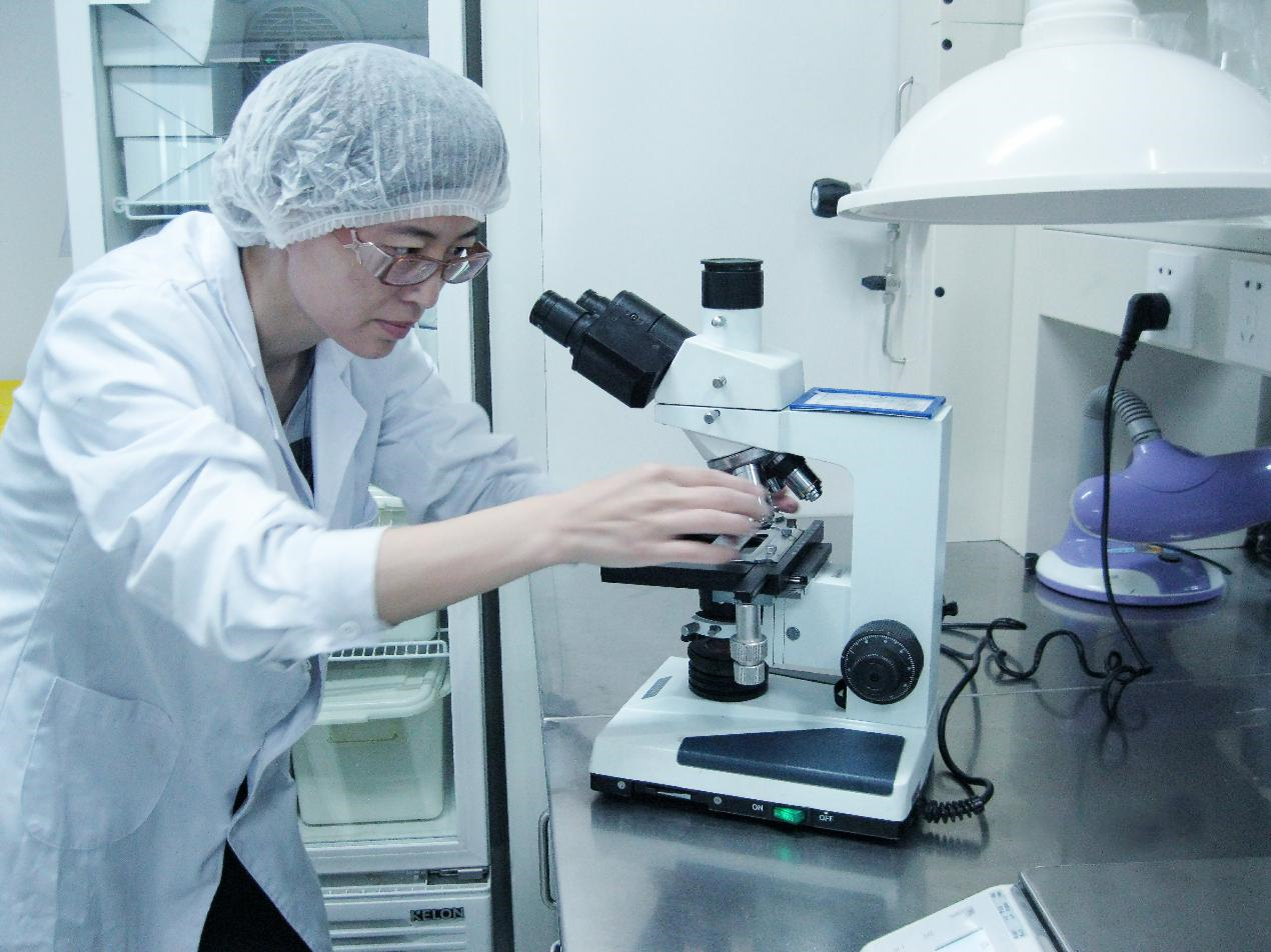 伊利質檢人孟根花在進行產品微生物檢測