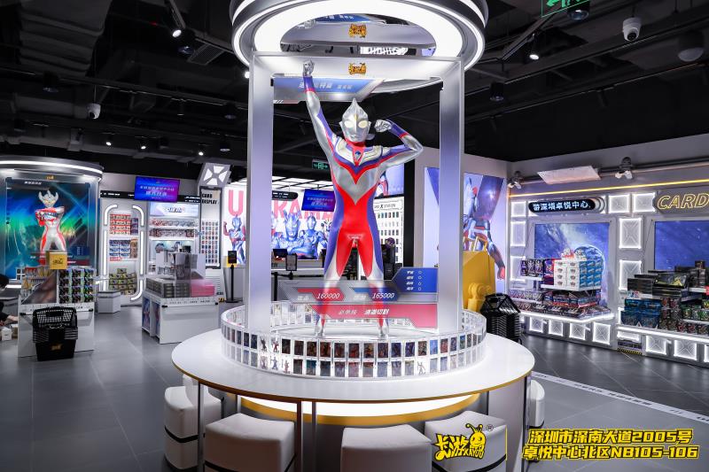 卡游動漫一貫以來打造親子互動體驗的愿景,在“趣發(fā)現(xiàn)、去成就”的道路上始終前進,不斷為每一個卡牌愛好者和親子家庭帶來更多的歡樂、營造更多的幸福和構(gòu)筑更多的溫暖。作為城市首家線下直營店的卡游北京富力廣場店和卡游深圳卓悅中心店就是典型代表,他們不僅完美繼承了如“奧特曼1:1等身立像圓桌”和“英雄對決專區(qū)”等興趣社交區(qū)域,還配合商場“新時尚、新生活、新主張”的理念,在多種玩法的加持下,將藝術(shù)、美學(xué)、生活融于一體,擁有無限的探索可能。