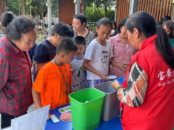 在換享留影區(qū)中,蒲公英講師開啟宣教的熱潮,向居民講解垃圾分類相關(guān)知識,派發(fā)垃圾分類宣傳折頁和《條例》手冊,引導居民從日常生活中細微開始,踐行源頭減量行動。